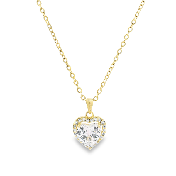 Diamond Heart Golden Sterling Silver Pendant Chain