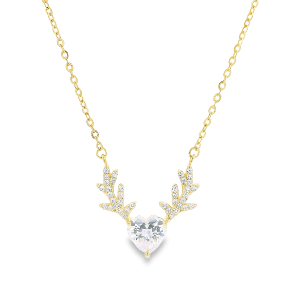 Reindeer Heart Golden Sterling Silver Pendant Chain
