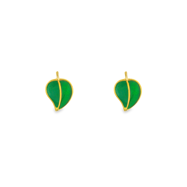 Load image into Gallery viewer, Green Leaf 1 micron gold plated silver earrings